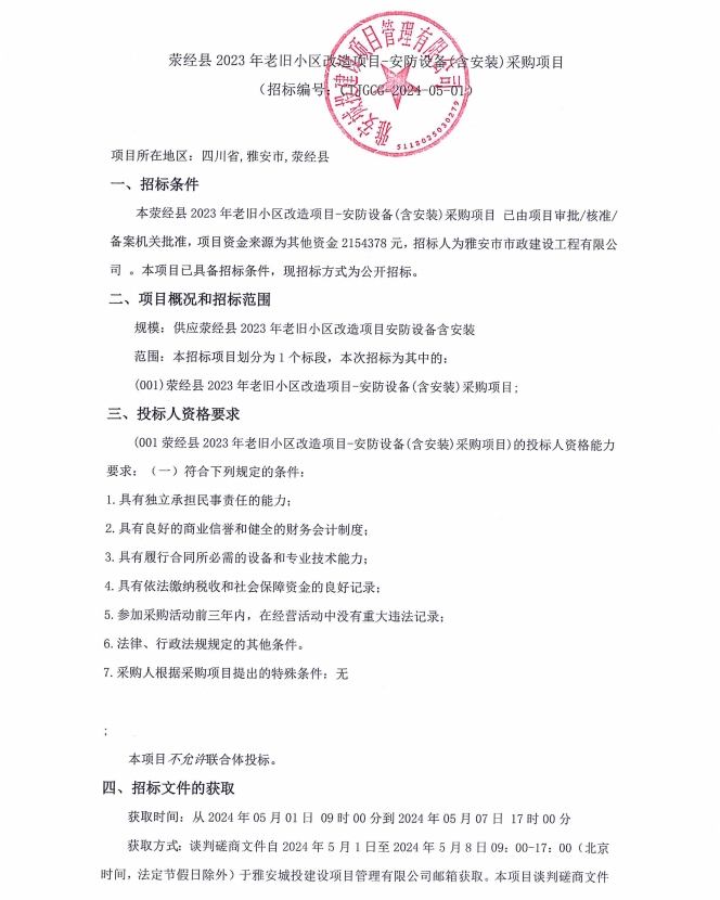 滎經(jīng)縣2023年老舊小區(qū)改造項目安防設(shè)備(含安裝)采購項目公告